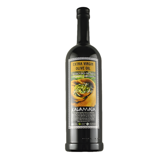 Vidutiniškai švelnus, nefiltruotas, ypač tyras alyvuogių aliejus KALAMATA (rūgštingumas 0.23%)