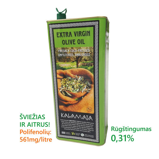 Ankstyvo derliaus, aitrus, ypač tyras, KALAMATA alyvuogių aliejus, 2024.10/11mėn. derlius