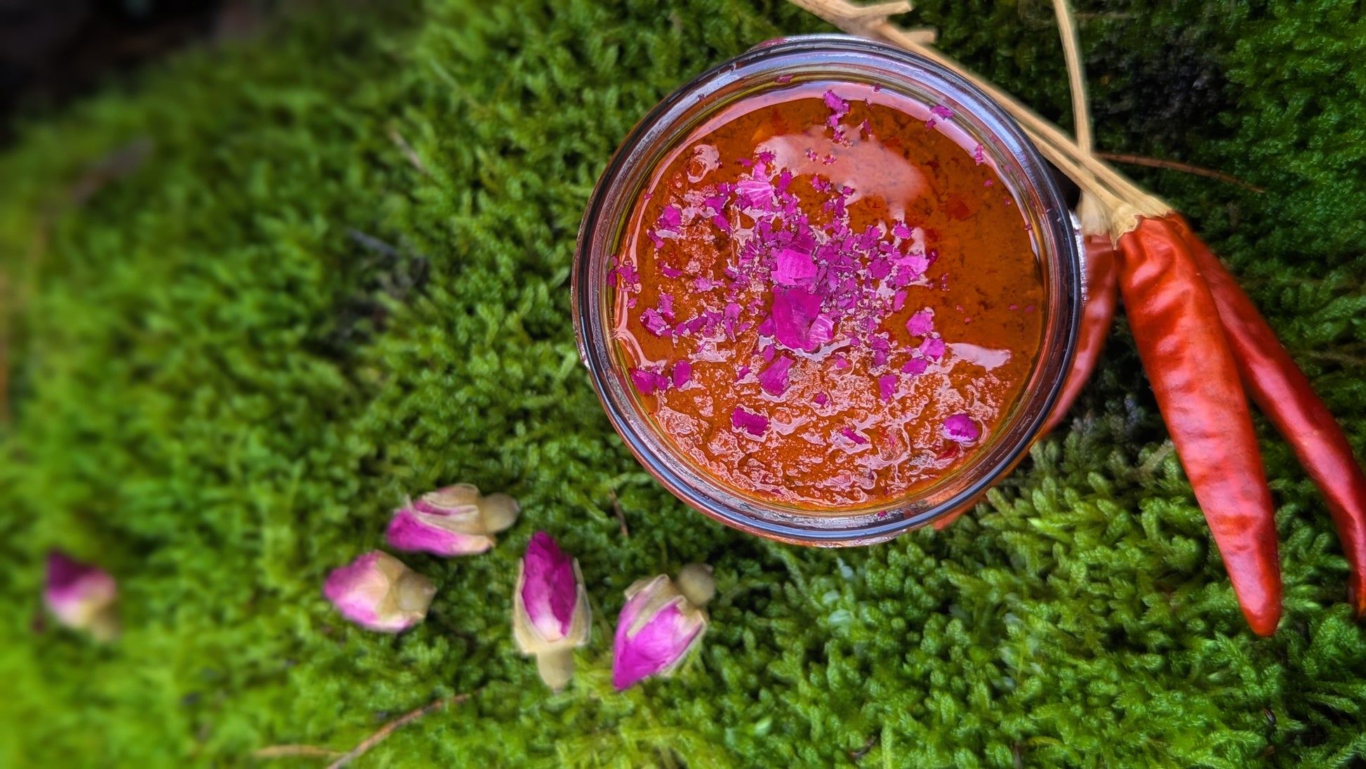 Sudėtis: saulėje džiovintos saldžiosios paprikos, čili dribsniai, EVOO, česnakai, džiovinti svogūnai, kuminas, kalendra, kmynai, himalajų druska, medus, obuolių sidro actas, pomidorų pasta, rožių žiedlapiai.